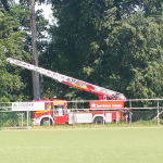 Erst nachdem die Feuerwehr mit einem Imker das Bienenvolk aus dem Baum entfernt und in einen Karton umgesetzt hatte, konnte das Spiel fortgesetzt werden. Im Nachhinein wäre ein Spielabbruch die bessere Lösung gewesen.
