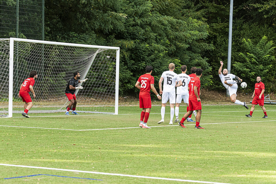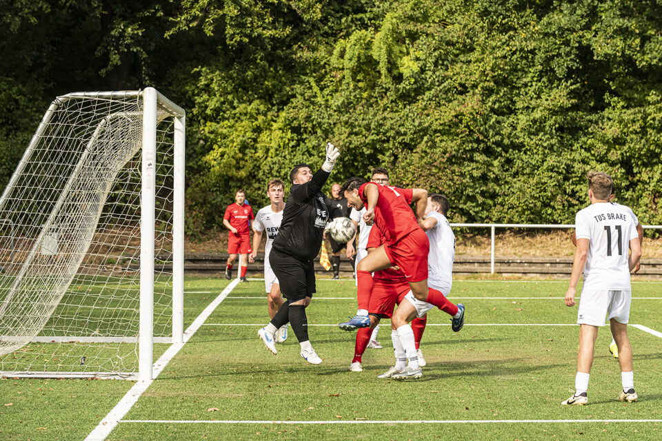 Wir haben die Kontrolle über das Spiel verloren. In der 40 Minute dann die die vorentscheidende Szene. Elfmeter für den TuS Brake und die Rote Karte für den Torwart von Schötmar. Christopher Mannel läuft an, doch der Aushilfstorwart hält. Ich muss allerdings gestehen , das kann Christopher besser. Die letzten beiden Strafstöße hat er souverän verwandelt.